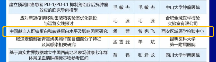 在2022中国医师协会检验医师年会电子壁报中,孟茜撰写的“中国献血人群铁蛋白和转铁蛋白水平及影响因素水平”和董旭才撰写的“单标本气动传输系统在智慧化实验室的应用-以西安区域医学检验中心建设项目为例”成功入围,进一步凸显了中心青年检验师在学科领域内探索的成果,为更多第三方检验机构与检验科提供了有益参考。
